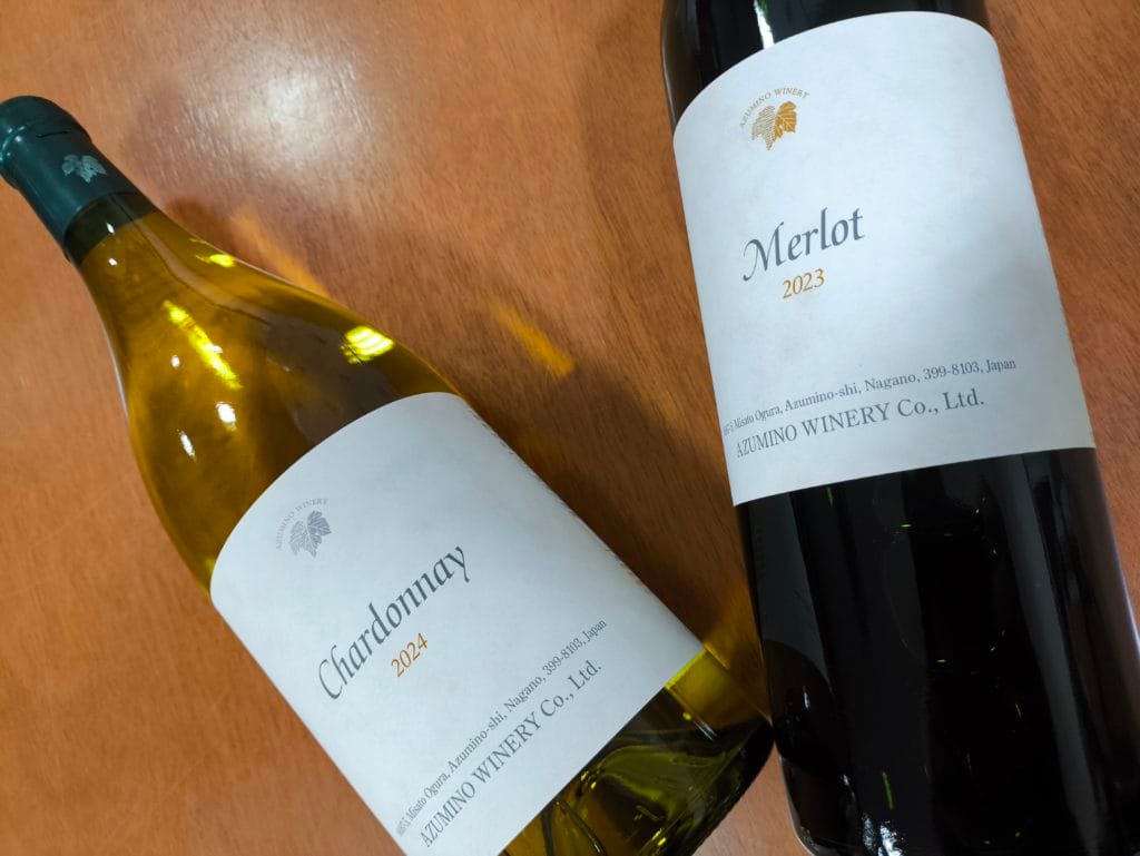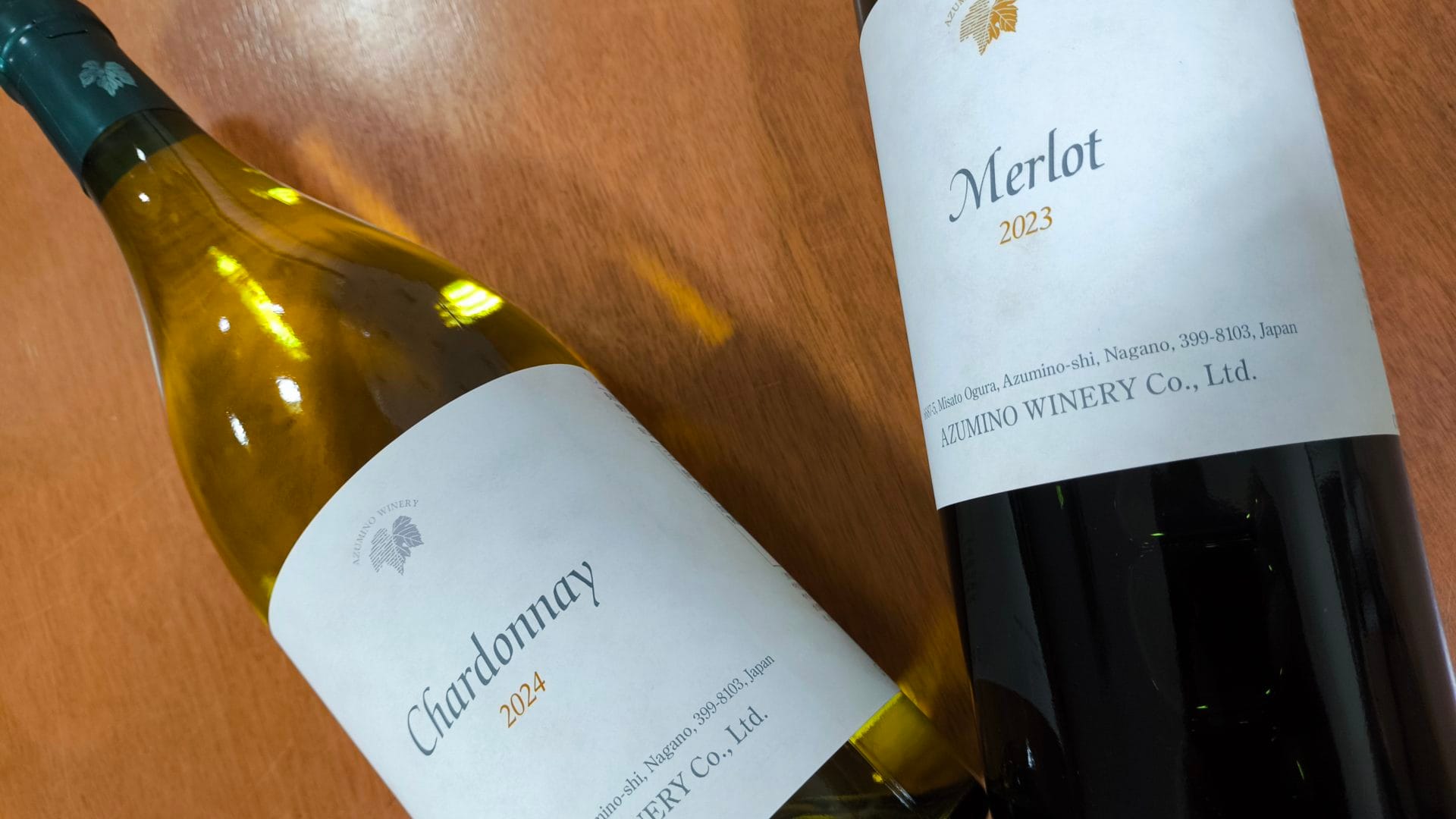 安曇野ワイナリーのボトル赤ワイン(メルロ)、白ワイン(シャルドネ)セットのお土産付き!